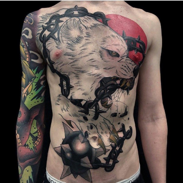 百乐动物纹身 男生胸部百乐动物纹身图片