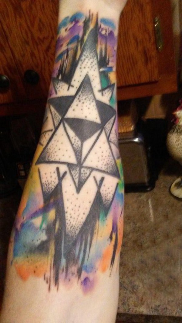 纹身六芒星图案 男生手臂上彩色的六芒星纹身图片
