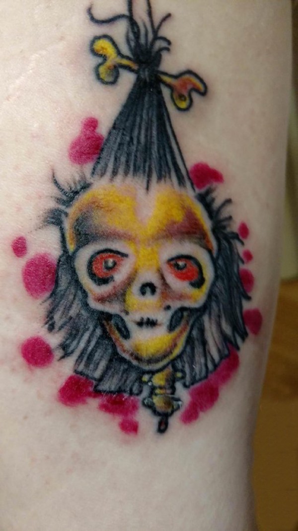 骷髅纹身 女生手臂上彩色的骷髅纹身图片