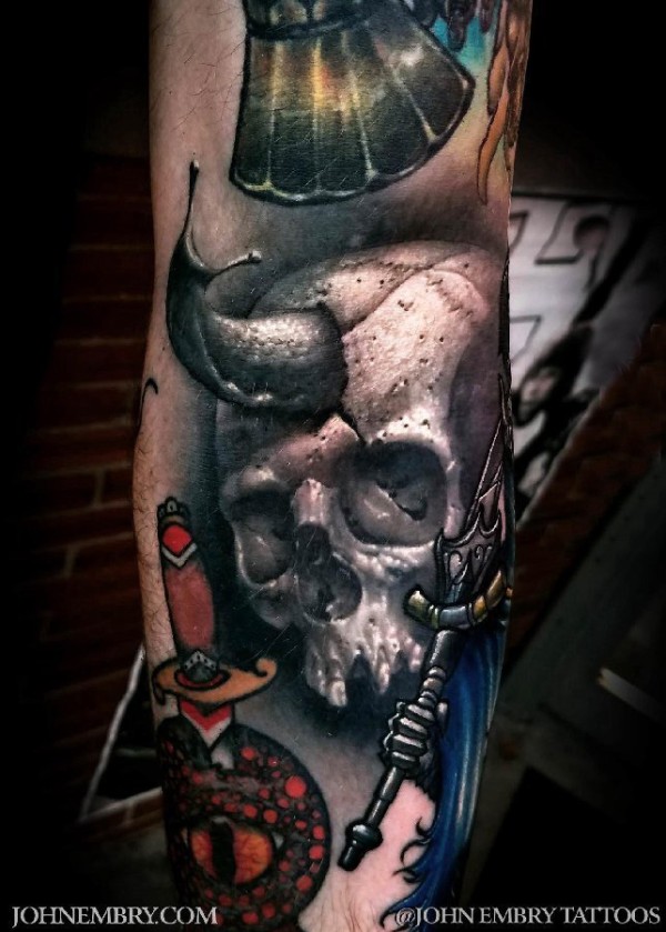 骷髅头纹身 男生小腿上骷髅头纹身图片