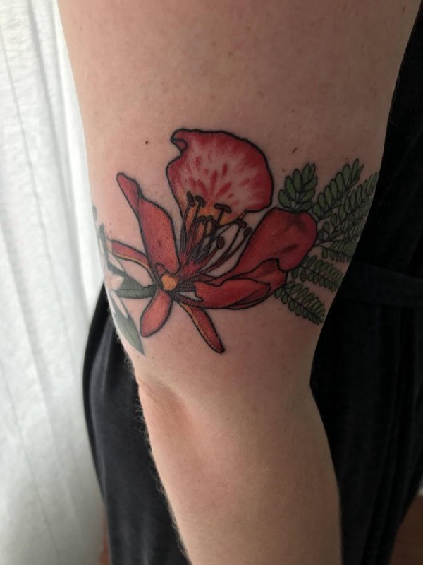 花朵纹身图案 女生手臂上彩色的花朵纹身图片