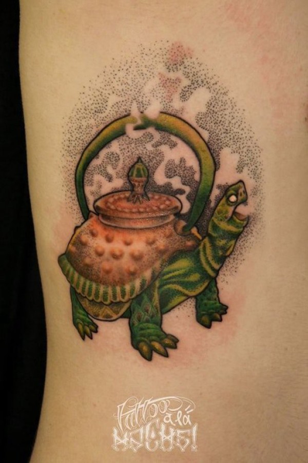 龟纹身 女生侧腰上彩色的乌龟纹身图片