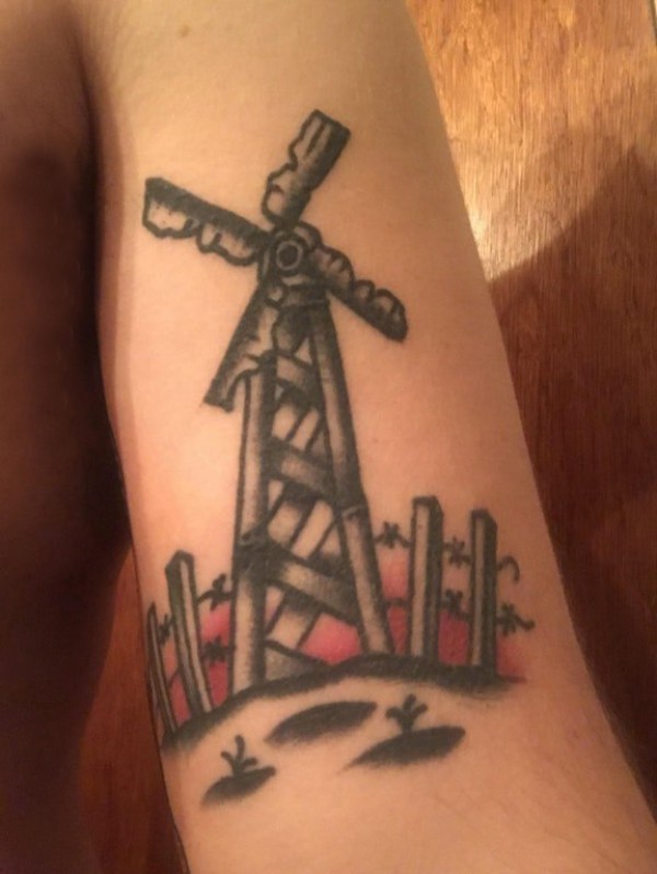 可爱纹身风车 男生手臂上彩色的风车纹身图片