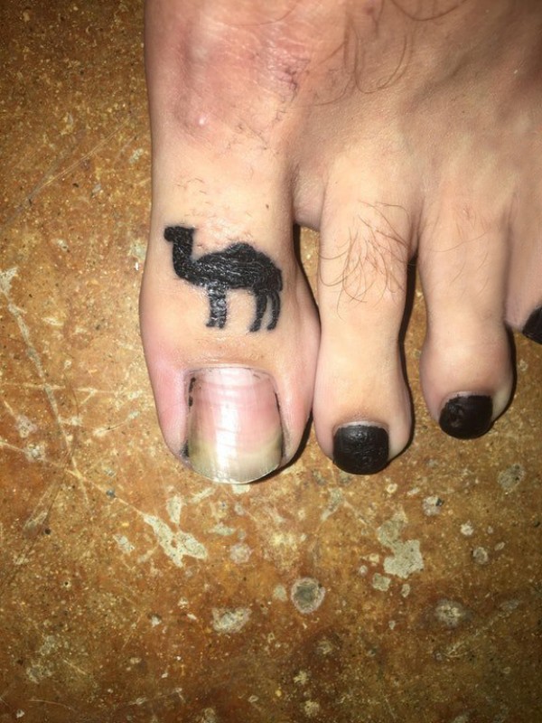 脚背纹身 男生脚趾上黑色的骆驼纹身图片