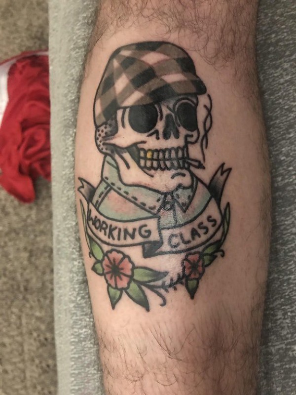 骷髅纹身 男生小腿上英文和骷髅纹身图片