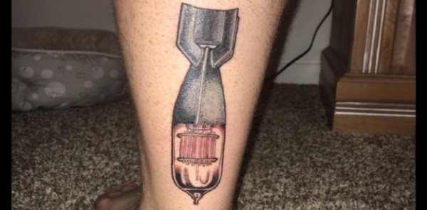 欧美小腿纹身 男生小腿上威猛的导弹纹身图片