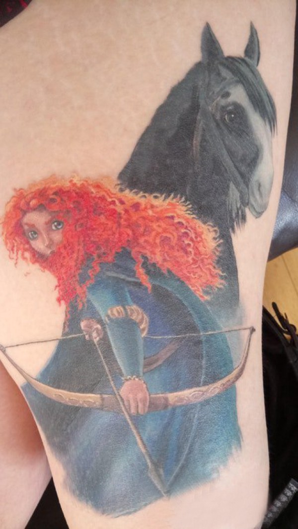 马和美女纹身图案 女生大腿上马和美女纹身图片