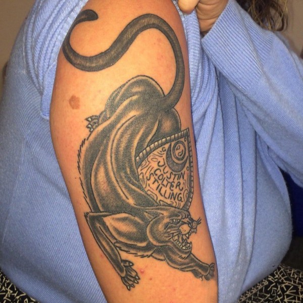 双大臂纹身 女生大臂上盾牌和豹子纹身图片