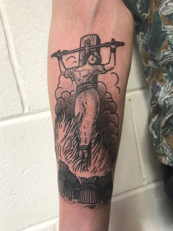 手臂十字架纹身 男生手臂上十字架和人物纹身图片