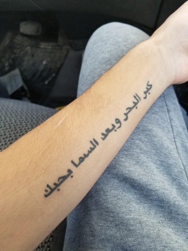 手臂纹身图片 男生手臂上黑色的梵文纹身图片