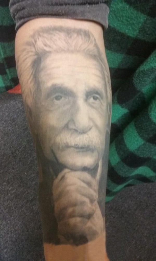 人物肖像纹身 男生手臂上黑色的爱因斯坦纹身图片