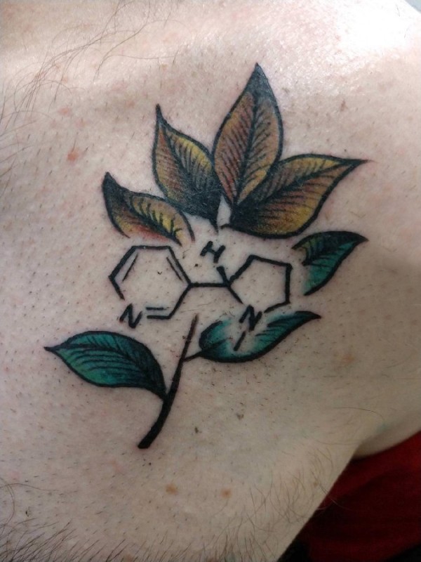 欧美系纹身 男生小腿上化学符号和树叶纹身图片