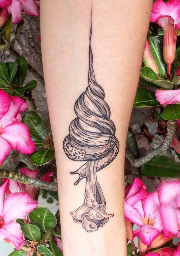 蜗牛纹身图案 女生手臂上黑灰的蜗牛纹身图片