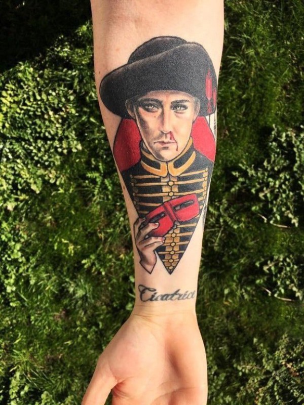 手臂纹身图片 女生手臂上英文和人物纹身图片