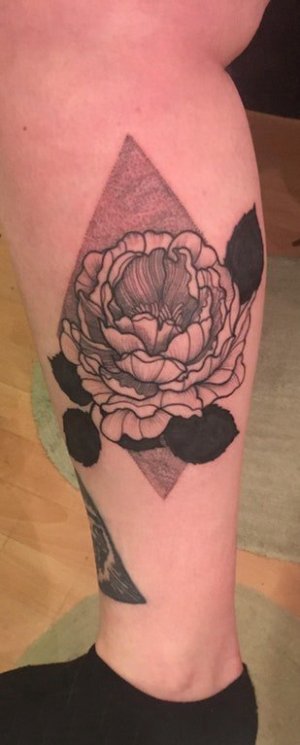 欧美小腿纹身 男生小腿上菱形和牡丹纹身图片