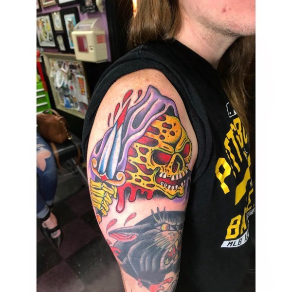 骷髅纹身 男生手臂上彩色的骷髅纹身图片