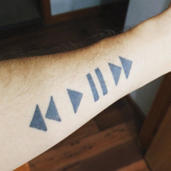 几何元素纹身 男生手臂上黑色的按键纹身图片