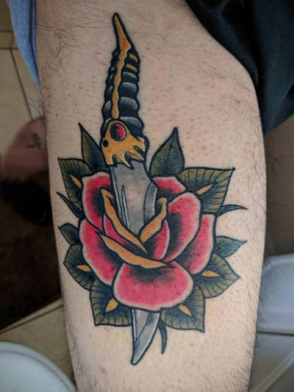 欧美玫瑰纹身 男生手臂上花朵纹身图片