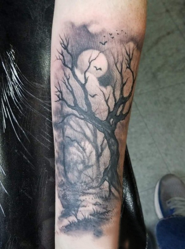纹身树和月亮纹身图案 女生手臂上树和月亮纹身图片