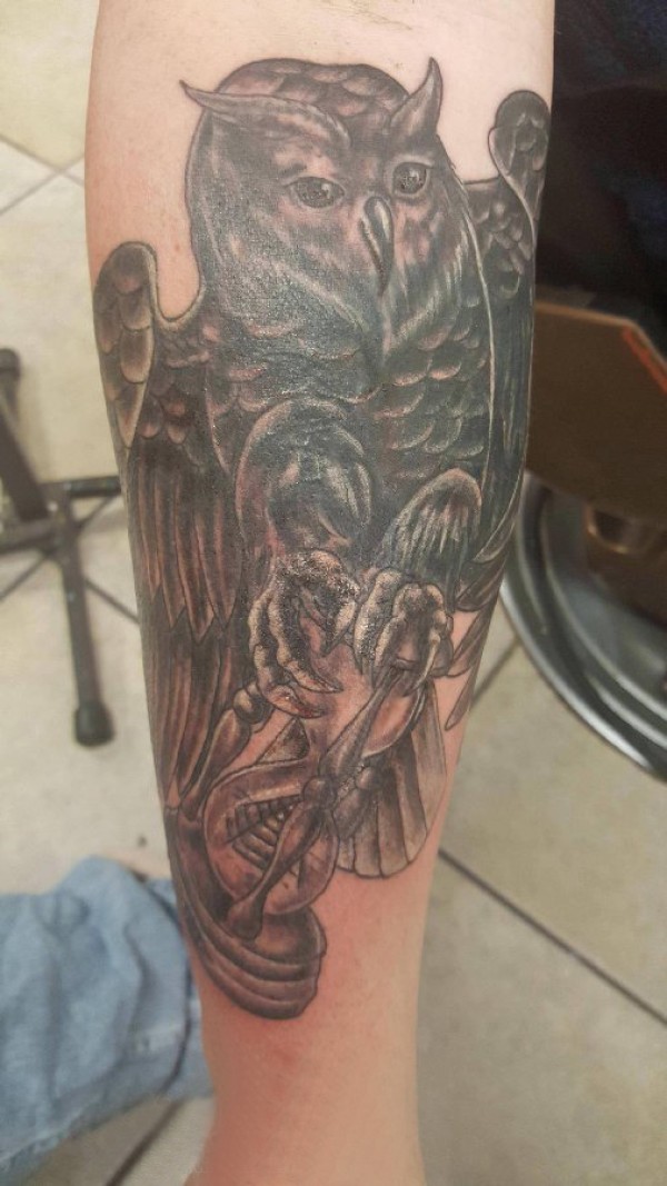 纹身猫头鹰 女生手臂上素描的猫头鹰纹身图片