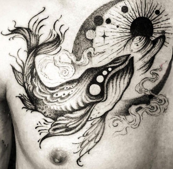 纹身鲸鱼 男生胸部鲸鱼纹身图片