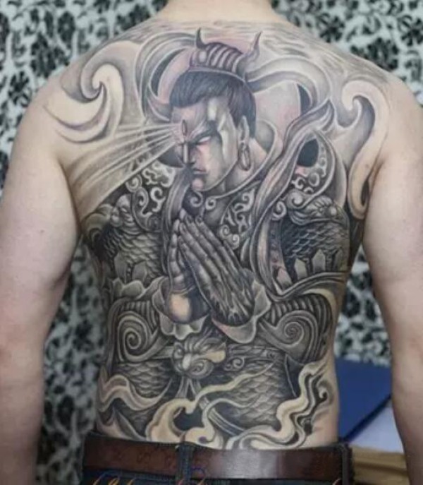 手臂大臂上个性霸气的二郎神杨戬纹身图案