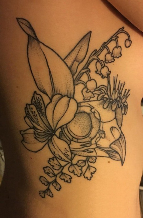文艺花朵纹身 女生侧肋上文艺花朵纹身图片