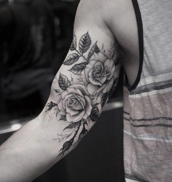 文艺花朵纹身 男生手臂上花朵纹身图片
