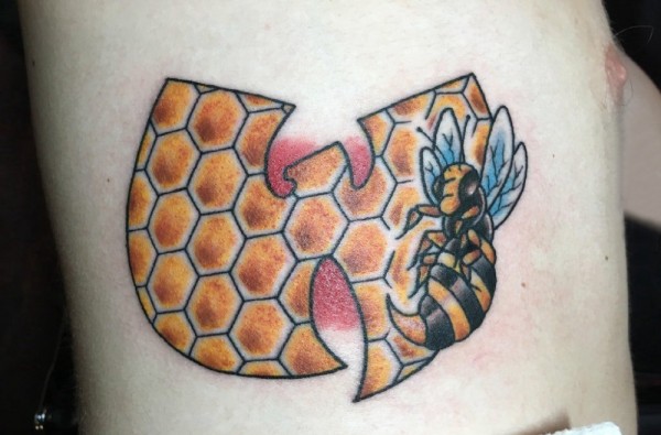 小蜜蜂纹身 男生侧腰上小蜜蜂和蜂巢纹身图片