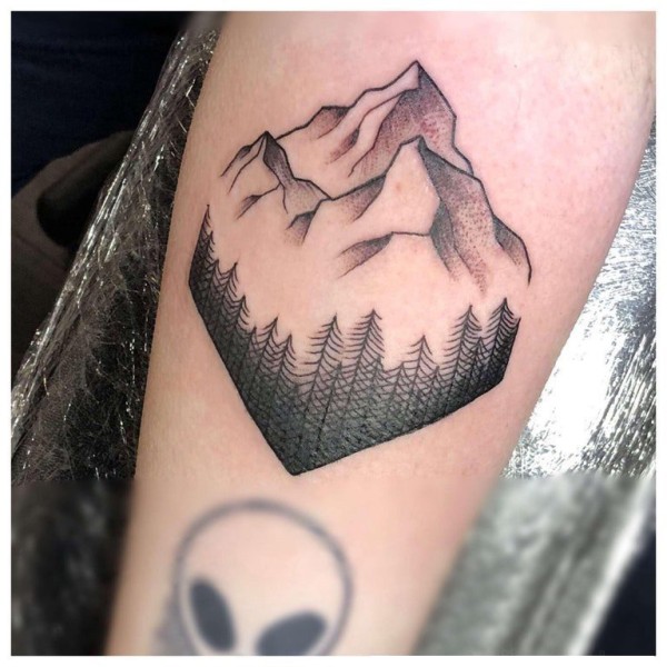 小山峰纹身 女生手臂上黑色的山峰纹身图片