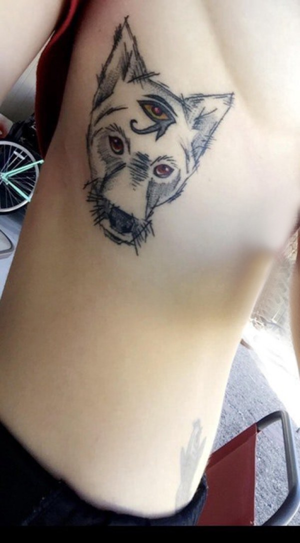 小狗纹身 女生侧腰黑色的小狗纹身图片