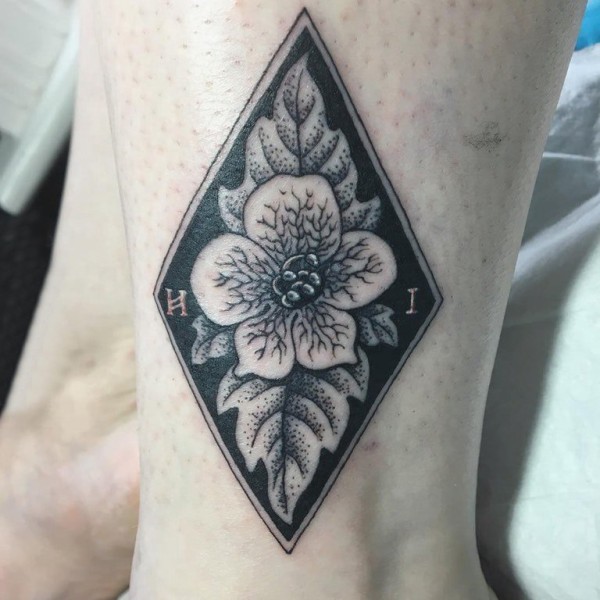 花朵和几何纹身图案 女生小腿上花朵和几何纹身图片