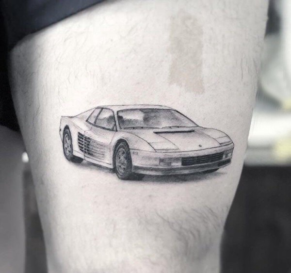 大腿纹身男 男生大腿上黑色的汽车纹身图片