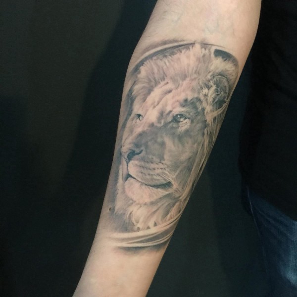 狮子王纹身 女生手臂上黑灰的狮子纹身图片
