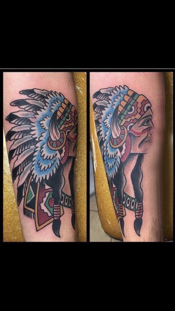 印第安人纹身 男生手臂上彩色的印第安人纹身图片