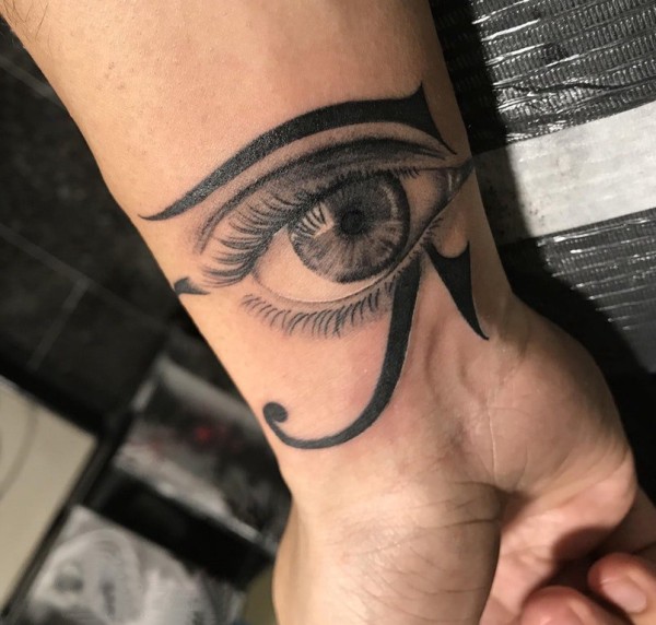 眼睛纹身 男生手腕上黑灰的眼睛纹身图片