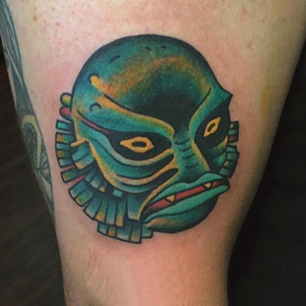 彩绘纹身 男生小腿上彩色的怪物纹身图片