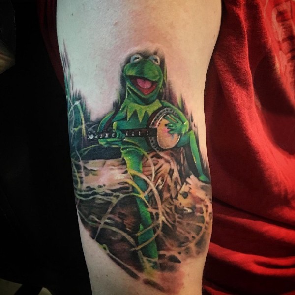 百乐动物纹身 男生大臂上彩色的青蛙纹身图片