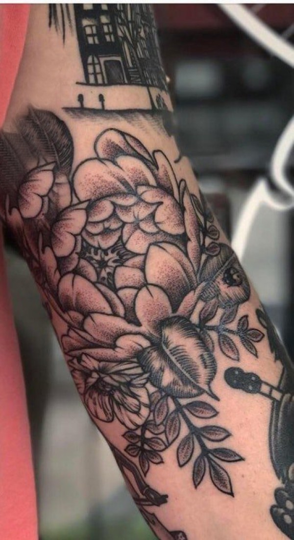 文艺花朵纹身 男生手臂上花朵纹身图片