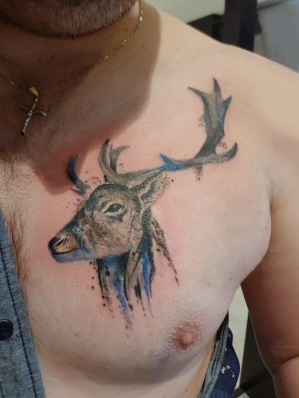 胸部纹身男 男生胸部彩色的麋鹿纹身图片