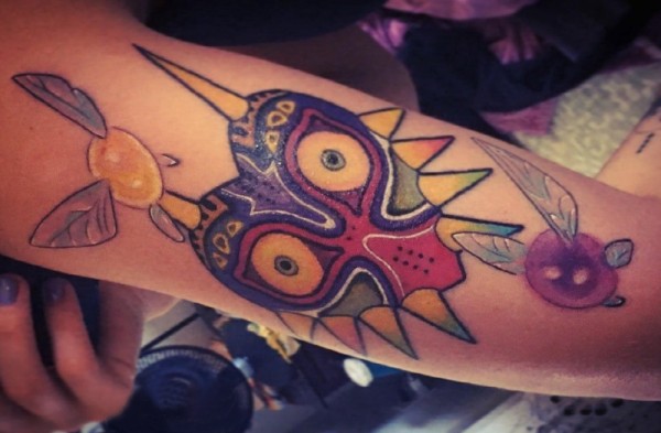 彩色纹身 女生手臂上彩色的心形纹身图片