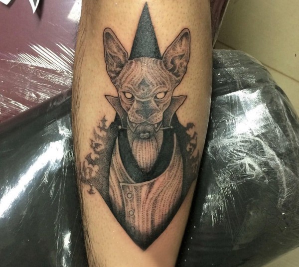 百乐动物纹身 男生小腿上几何和小狗纹身图片