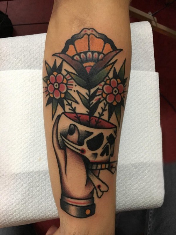 纹身小臂 女生手臂上花朵和手纹身图片