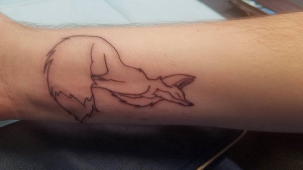 小动物纹身 男生手臂上黑色的狐狸纹身图片