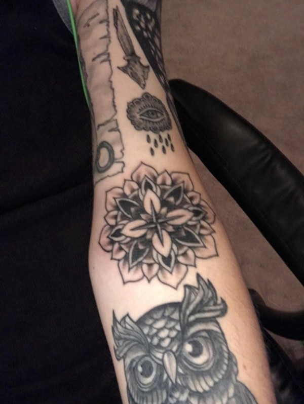 黑灰纹身风格 男生手臂上黑灰的梵花纹身图片