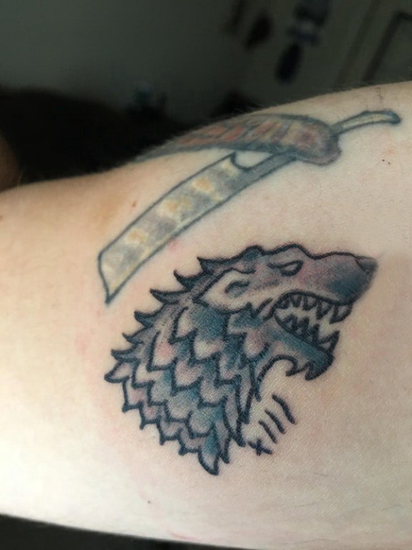 滴血狼头纹身 男生大臂上极简的狼头纹身图片