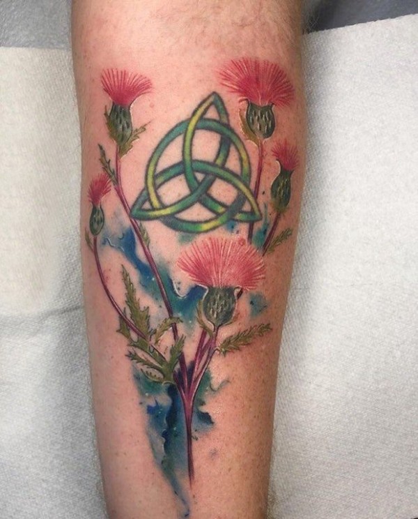 植物纹身 女生小臂上植物和几何图形纹身图片