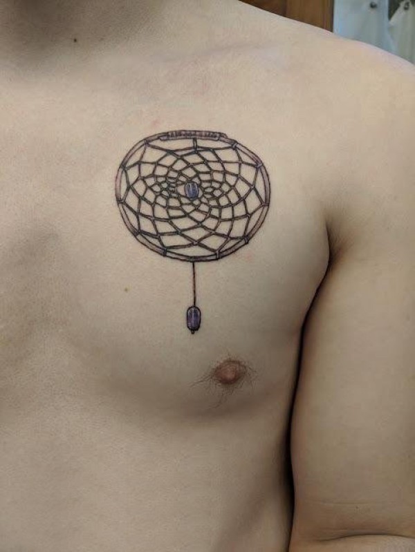 蜘蛛网纹身 男生胸前黑色的几何蜘蛛网纹身图片