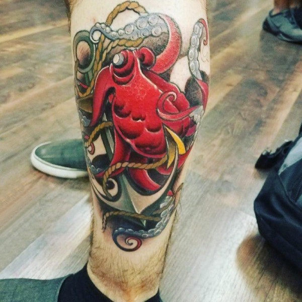 章鱼纹身图案 男生小腿上章鱼纹身图案