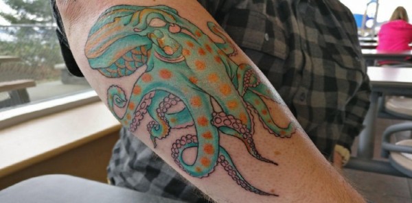 章鱼纹身图案 男生手臂上章鱼纹身图案